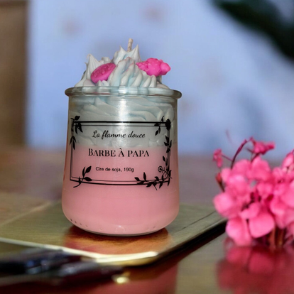 Laissez-vous séduire par ma bougie gourmande Barbe à Papa, au parfum sucré et régressif qui rappelle les fêtes foraines 🎡