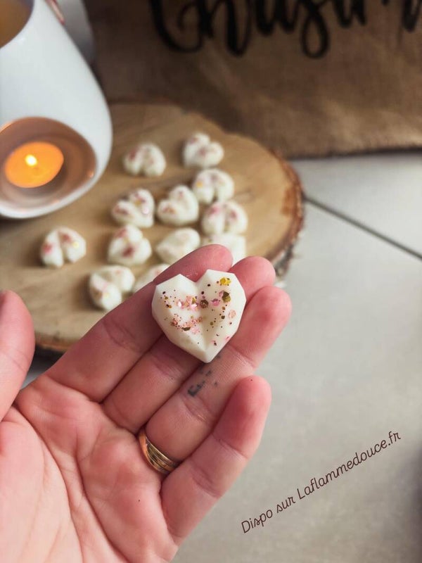 Craquez pour mes fondants en forme de cœur, parfaits pour créer une ambiance chaleureuse et parfumée dans votre intérieur. Fabriqués avec soin, ils diffusent délicatement leur parfum une fois fondus, pour un moment cocooning et réconfortant. Disponibles en plusieurs odeurs, il y en a pour toutes les envies et toutes les ambiances 💕