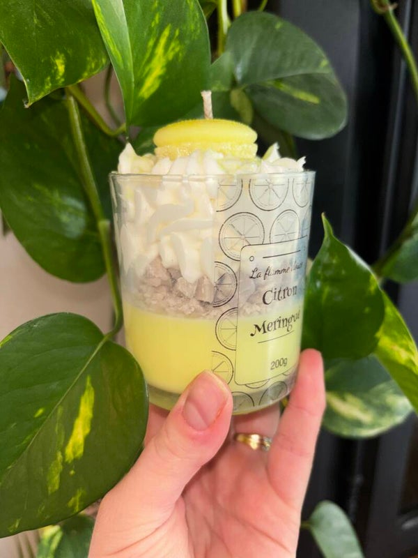Laissez-vous séduire par la douceur acidulée de ma bougie gourmande au parfum citron meringué.