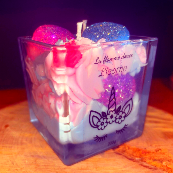Bougie gourmande licorne aux couleurs pastel, inspirée d’un univers féerique. Son parfum doux et sucré crée une ambiance magique et chaleureuse, idéale pour une touche déco pleine de douceur. 🦄✨